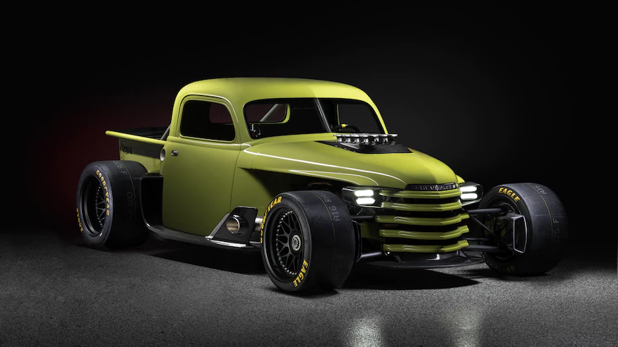 If there is one classic truck that’s begging for hot rodding, it’s a Chevrolet Loadmaster. These Chevy Advance-Design trucks have a look that is timeless, and look awesome slammed to the ground with a big, stonking V-8 in the spacious engine bay. Now, what if you took that same Loadmaster and decided that just hot rodding it wouldn’t be enough? What if you wanted to bring the Loadmaster into modern open-wheel racecar territory while honoring the overall aesthetic of the Advance-Design look? Well, that’s exactly what the Enyo super truck is all about.